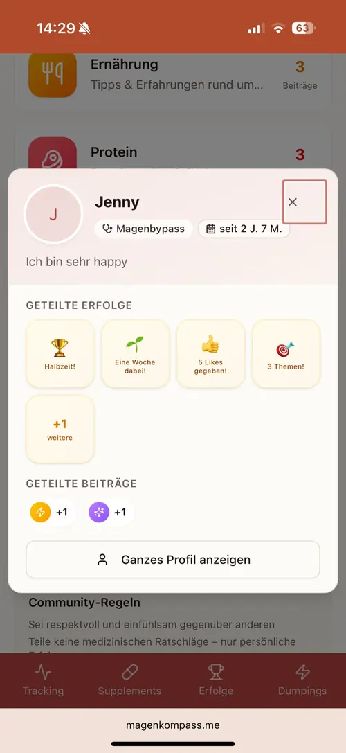 2023 habe ich einen Magenbypass bekommen und seither 53 kg abgenommen. Magenkompass ist mein Herzensprojekt – von einer Betroffenen, für Betroffene.